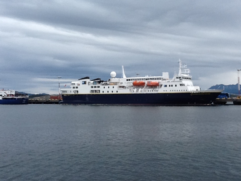 Food on the ship was pretty interesting. Rabbit meat, raw tuna, raw chicken soaked in curry sauce, duck legs, toothfish, and Brille (another fish), and reindeer meat. I ate none of the above! Mama always told me not to eat raw fish or meat because I would get worms. Also I don’t eat red meat anyway. I found out that the waiter would bring me helado (and yes, dulce de leche) upon request so I would eat the veggies and salad and then have my helado! Jeff tried a few things and I hope he doesn’t have worms. Too soon to tell. Will he have to be de-wormed like a cat? May have to take him to the vet!