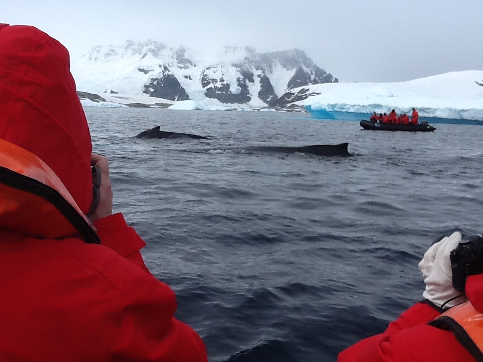 Prior to this trip we thought the only place left in the world where animals have no fear of humans was Galapagos. But we found Antarctica to be the same. Not enough humans to cause them any problems and the humans they do see stay a distance, do not feed, keep quiet and only take pictures. So, the penguins walk right past us or right up to us. The whales seem curious and get really close (Yikes!) and I mean close!
